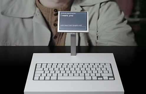 Cette collection personnelle devient ainsi une base de données collective dans laquelle chaque mot ou chaque phrase prononcée peut être recherchée par le spectateur. En entrant par exemple une requête telle que “je t’aime”, l’œuvre de Julian Palacz projette sur l’écran en face du spectateur toutes les séquences vidéo tirées de films dans lesquelles ces mots sont prononcés.